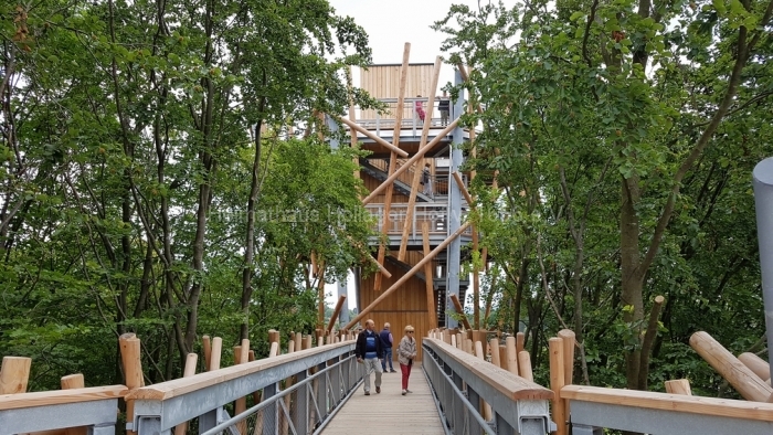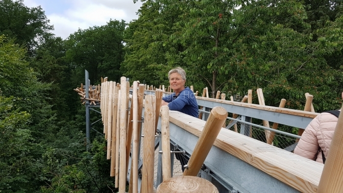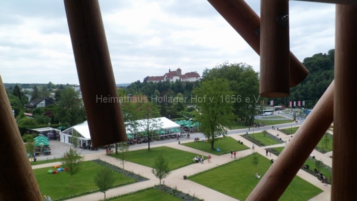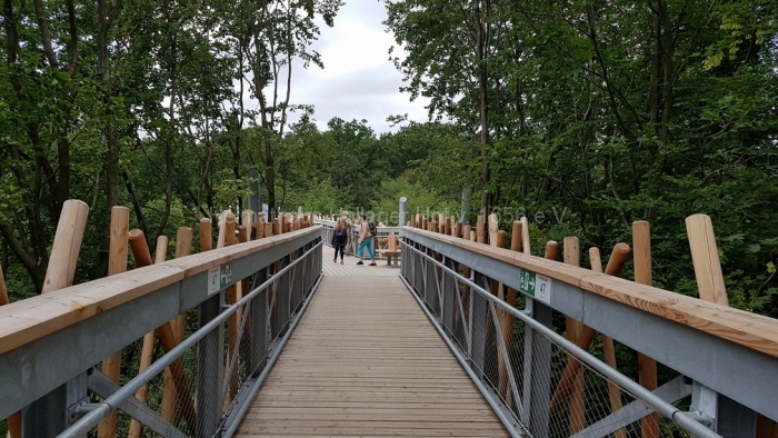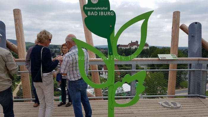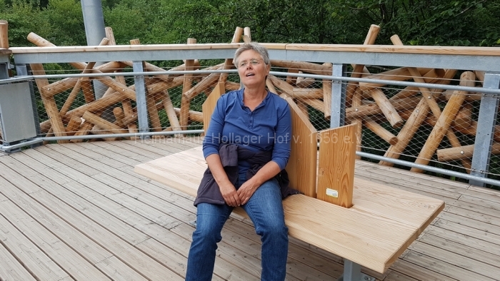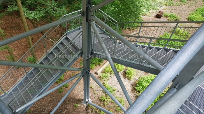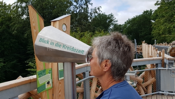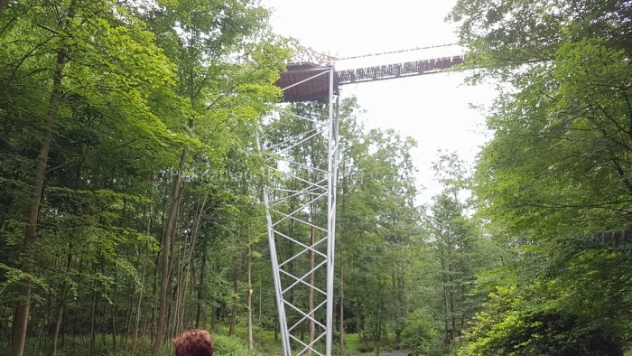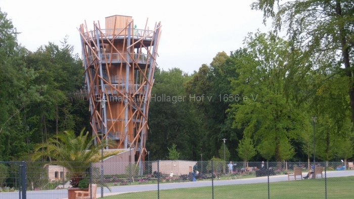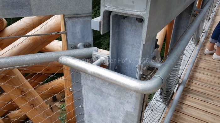 Nach fast 2 Stunden Führung bedanken wir uns bei Frau Schaiper für die interessanten Informationen, und ab jetzt geht jeder einzeln oder in Grüppchen auf individuelle Entdeckungstour. Den Schreiber dieser Zeilen zieht es auf den 32 m hohen Aussichtspunkt, von dem der Baumwipfelpfad abgeht.