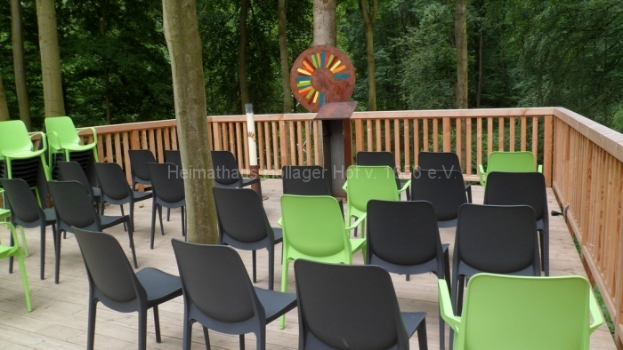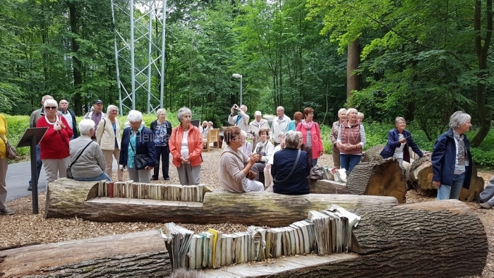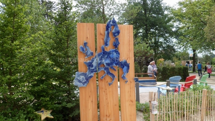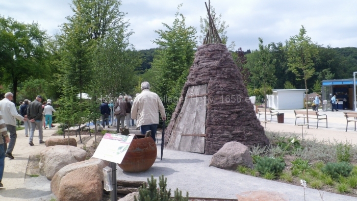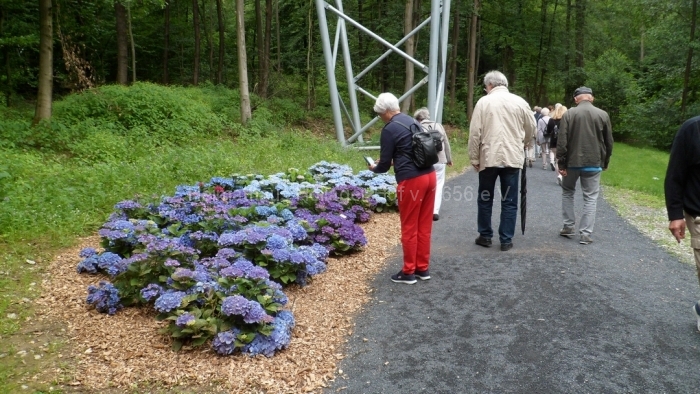 Natürlich kann man auch geführt in 1 1/2 Stunden nicht alles erleben, aber Frau Schaiper hat eine Tour ausgesucht, die uns nicht überfordert und trotzdem die wichtigsten Blickfänge abdeckt. In Bad Iburg hat man, abweichend zu früheren anderen Gartenschauen, den vorhandenen Wald jenseits des Charlottensees sehr ideenreich und gelungen in die Gartenschau eingebunden.