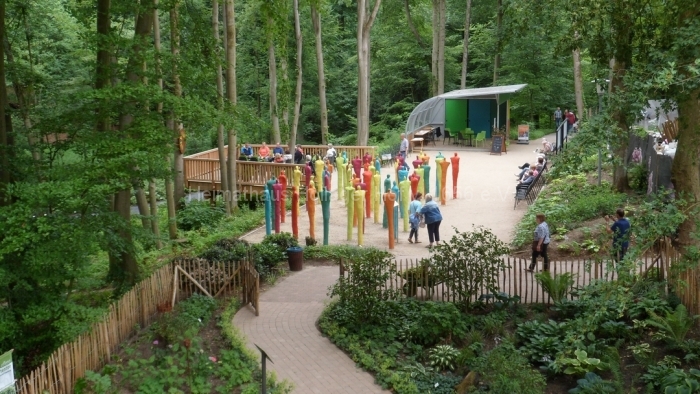 Es gibt 14 thematische Lichtungen und -Inseln und einen Baumwipfelpfad, der sich im Zickzack durch die sehenswerten Bäume schlängelt. Eine Reihe von Künstlern hat im Wald Installationen aufgebaut, die sich mit Nachhaltigkeit, Gesundheit und dem Kreislauf der Natur beschäftigen.