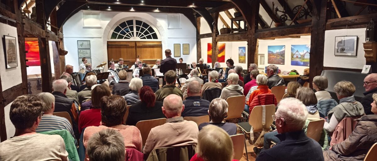 Dass das Akkordeon weit mehr ist als eine Quetschkommode oder ein Trekkebüdel bewies das Osnabrücker Akkordeon-Orchester am Freitag, dem 06.03.2026, auf beeindruckende Weise. Knapp 50 Gäste waren der Einladung des Heimatvereins gefolgt und erlebten im Heimathaus ein Konzert auf höchstem musikalischem Niveau.