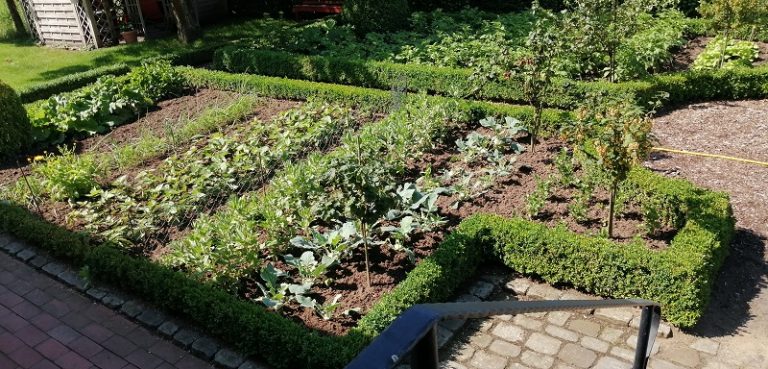 Auf der Westseite des Heimathauses befindet sich unser Bauerngarten mit Eibeneinfassung der Wege. Der Garten ist ganzjährig zugänglich und wird ehrenamtlich von Vereinsmitgliedern gepflegt.