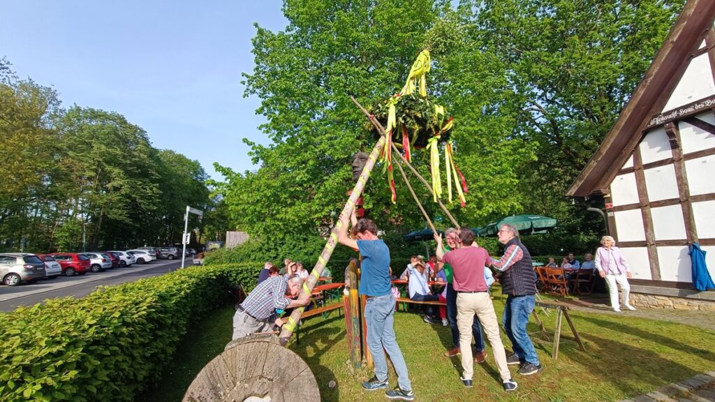 Wir stellen einen Maibaum auf